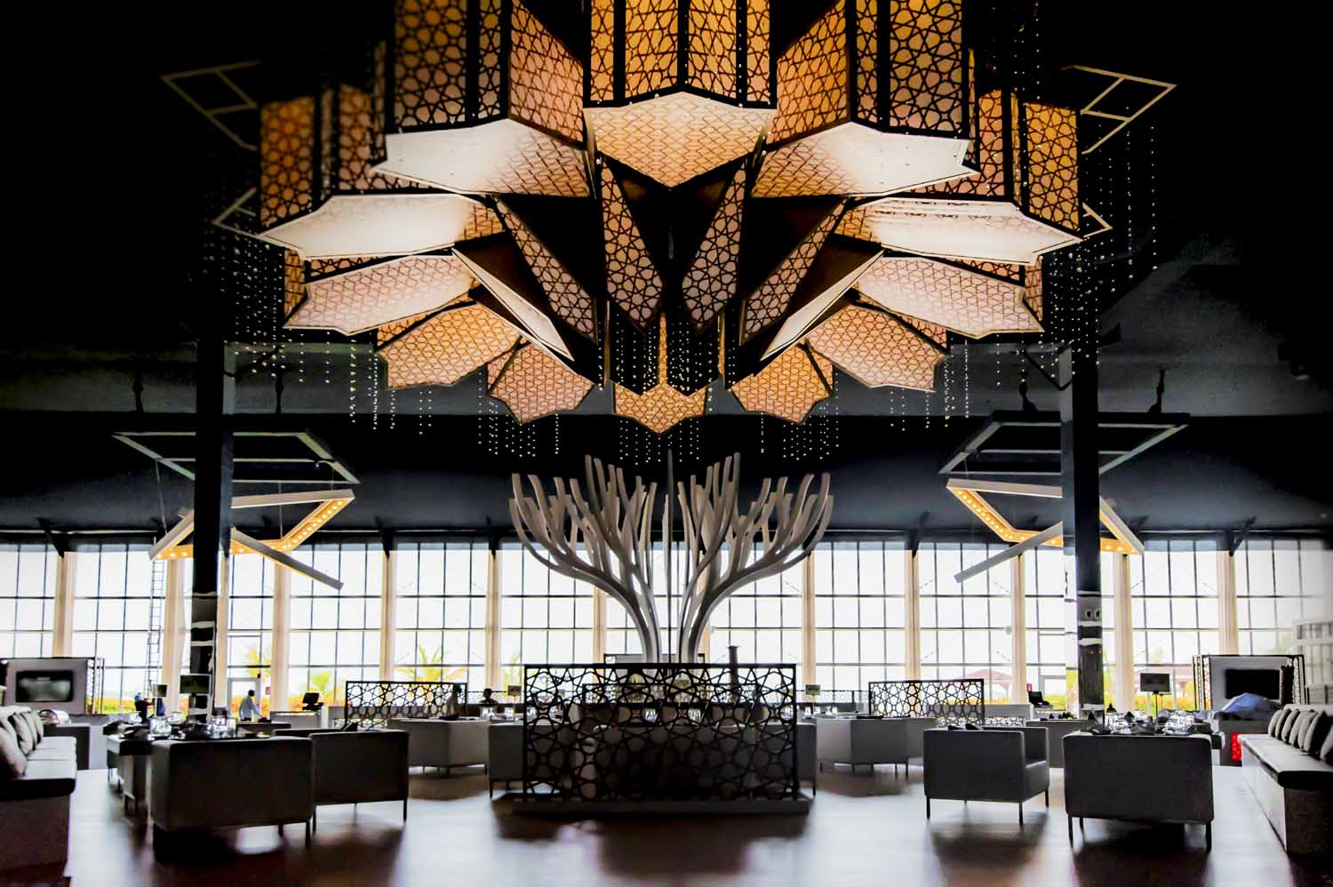 The secret of creating a special Ramadan tent is to know how to update and upgrade traditional features using a modern design vernacular. UAE Ramadan tents can range in style from traditional to traditional with some contemporary touches to completely modern. It is vital to have a light hand when using Arabian motifs as design inspiration. Bespoke design pieces can add touches of enchantment and increase a venue’s charm, for example in 2017, a bespoke chandelier was suspended from the ceiling in Emirates Palace and in 2016 we created individual seating areas for JBH.